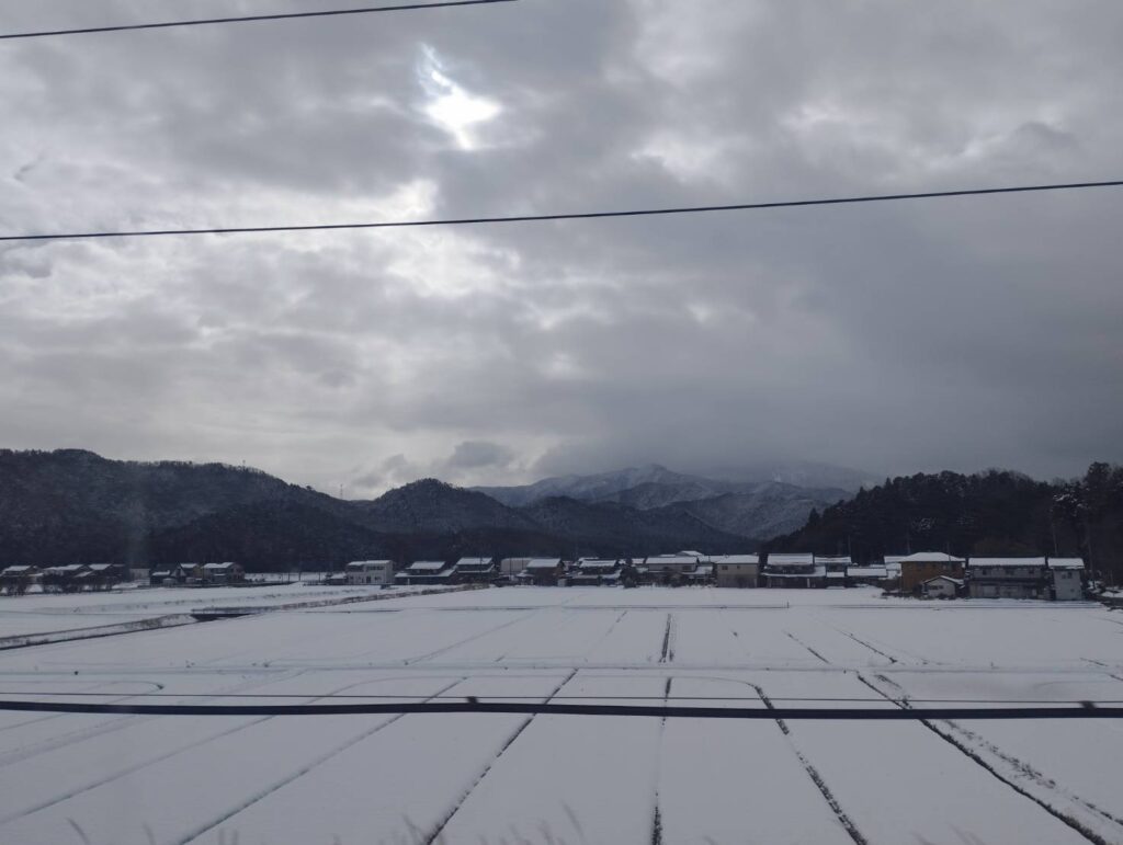 車窓からは、前日までの寒波の置き土産❄️が見えました。