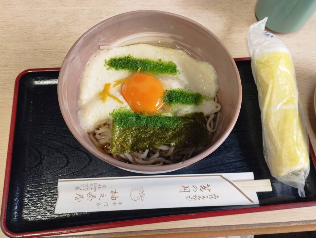 お腹が空いたので、新蕎麦のとろろ月見そばをいただきました。